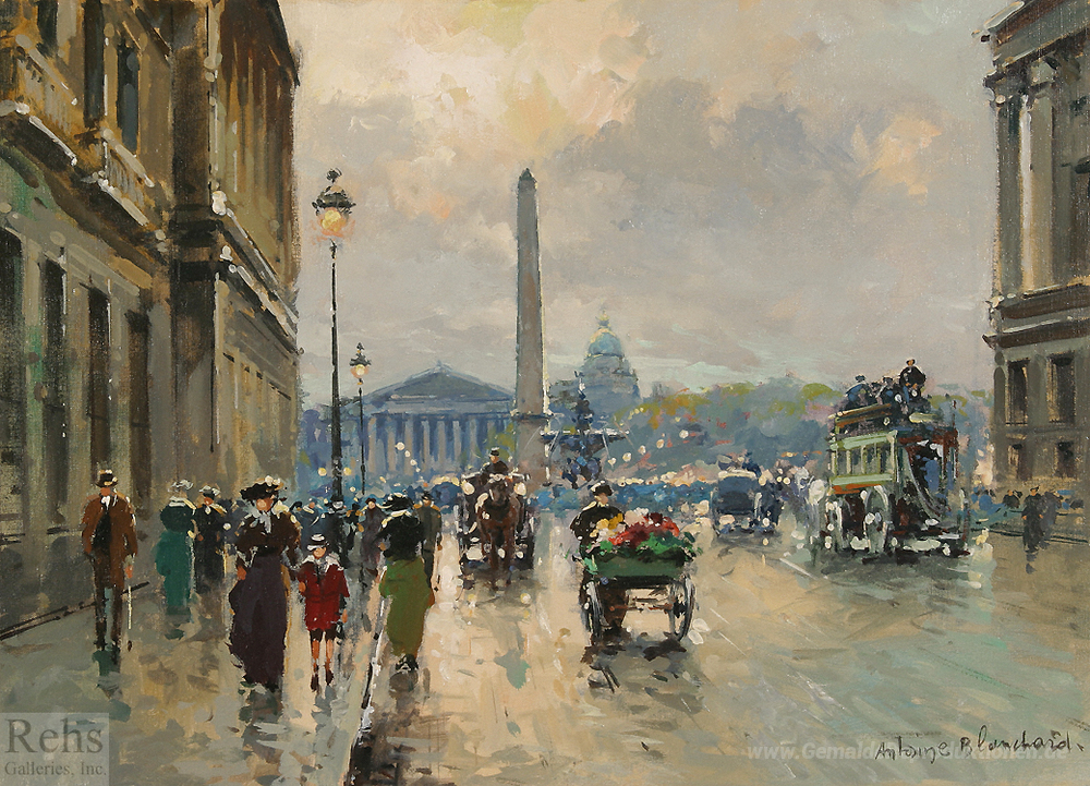 Wir bieten Ihnen eine handgefertigte Reproduktion auf Leinwand des berühmten Kunstwerks 'Place de la Concorde' von Antoine Blanchard, aus dem Reproduktionsmuseum.