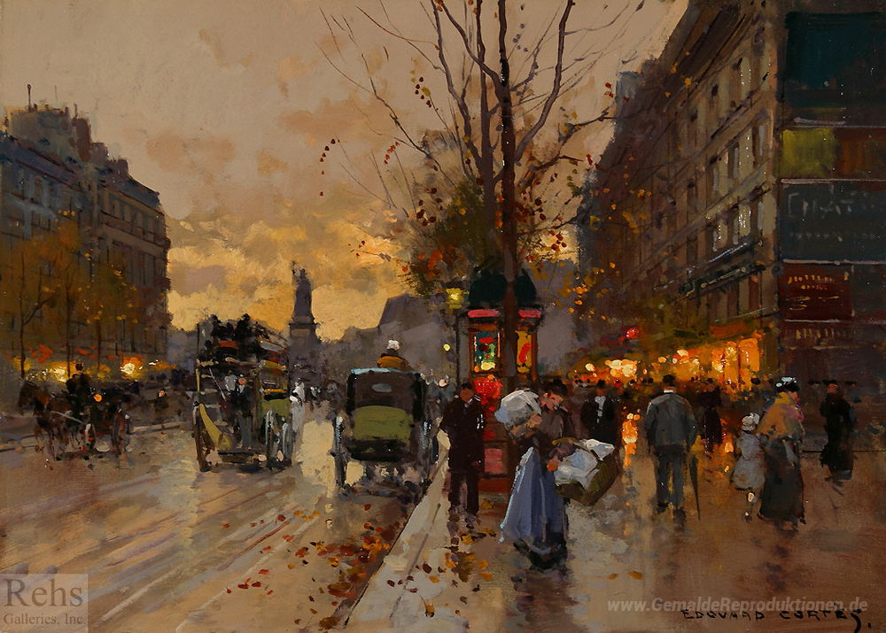 Die künstlerischen Techniken von Edouard Cortes sind geprägt von dynamischen Pinselstrichen und einer einzigartigen Farbpalette, die das Gemälde zum Leben erwecken. Place de la République schafft durch seine lebendige Darstellung eine Atmosphäre von Eleganz und Gemütlichkeit, die jeden Raum bereichert. Lassen Sie sich von diesem Meisterwerk inspirieren und verleihen Sie Ihrer Umgebung einen Hauch von zeitloser Schönheit und Kreativität.