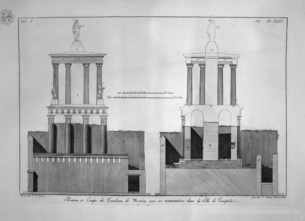 Wir bieten Ihnen eine handgefertigte Reproduktion auf Leinwand des berühmten Kunstwerks 'Plan des Grabes von Mamia und Nebengebäuden, in Pompeji' von Giovanni Battista Piranesi, aus dem Reproduktionsmuseum.