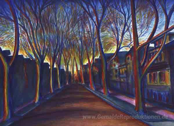 Wir bieten Ihnen eine handgefertigte Reproduktion auf Leinwand des berühmten Kunstwerks 'Platanen, Timon Straße' von Patrick Willett, aus dem Reproduktionsmuseum.
