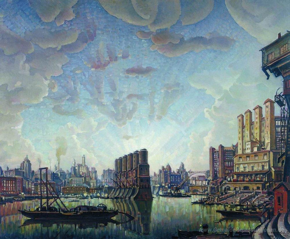 Wir bieten Ihnen eine handgefertigte Reproduktion auf Leinwand des berühmten Kunstwerks 'Port of imaginäre Stadt' von Konstantin Bogaevsky, aus dem Reproduktionsmuseum.