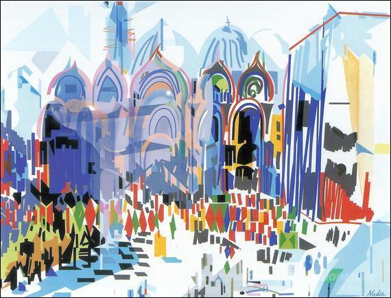 Wir bieten Ihnen eine handgefertigte Reproduktion auf Leinwand des berühmten Kunstwerks 'Procissão em Veneza' von Nadir Afonso, aus dem Reproduktionsmuseum.