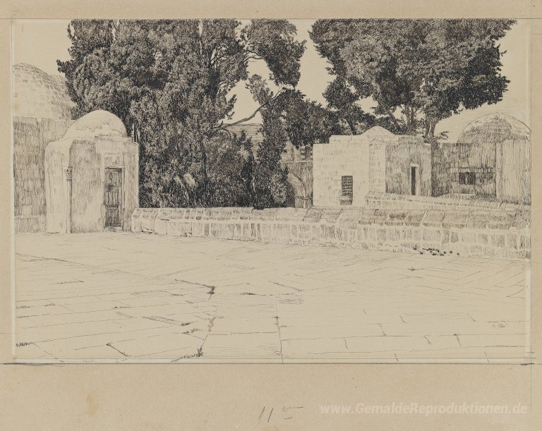 Wir bieten Ihnen eine handgefertigte Reproduktion auf Leinwand des berühmten Kunstwerks 'Rückseite der Omar-Moschee' von James Tissot, aus dem Reproduktionsmuseum.