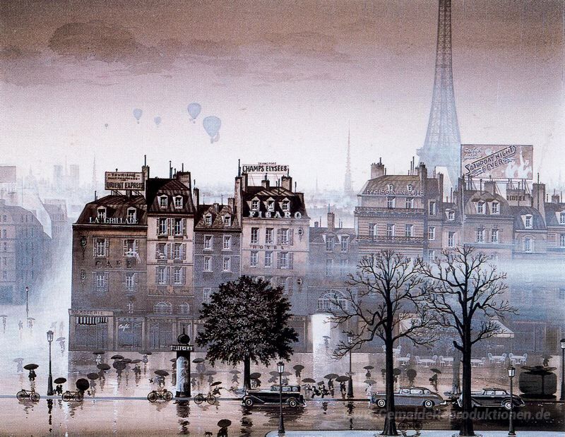 Wir bieten Ihnen eine handgefertigte Reproduktion auf Leinwand des berühmten Kunstwerks 'Regnerischen Tag' von Hiro Yamagata, aus dem Reproduktionsmuseum.