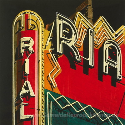 Wir bieten Ihnen eine handgefertigte Reproduktion auf Leinwand des berühmten Kunstwerks 'Rialto' von Robert Cottingham, aus dem Reproduktionsmuseum.