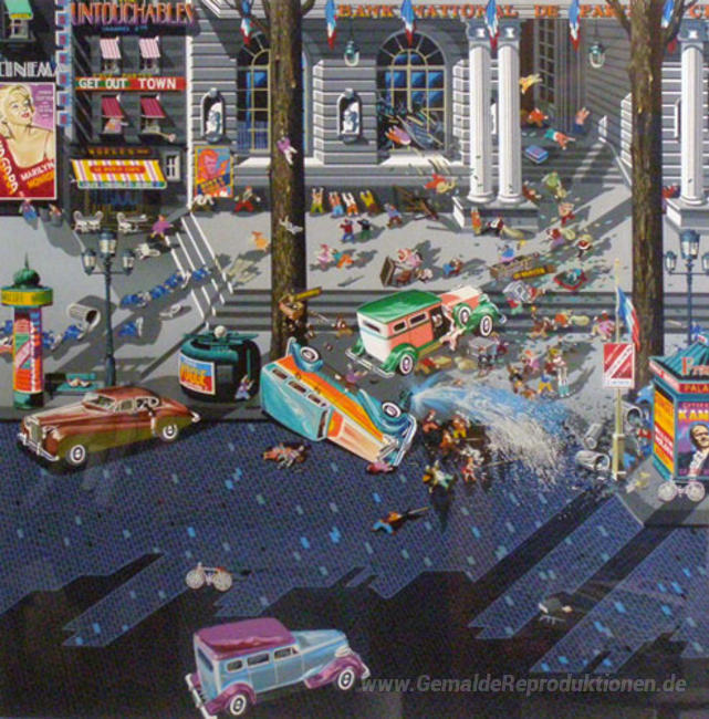 Wir bieten Ihnen eine handgefertigte Reproduktion auf Leinwand des berühmten Kunstwerks 'Robbers II' von Hiro Yamagata, aus dem Reproduktionsmuseum.