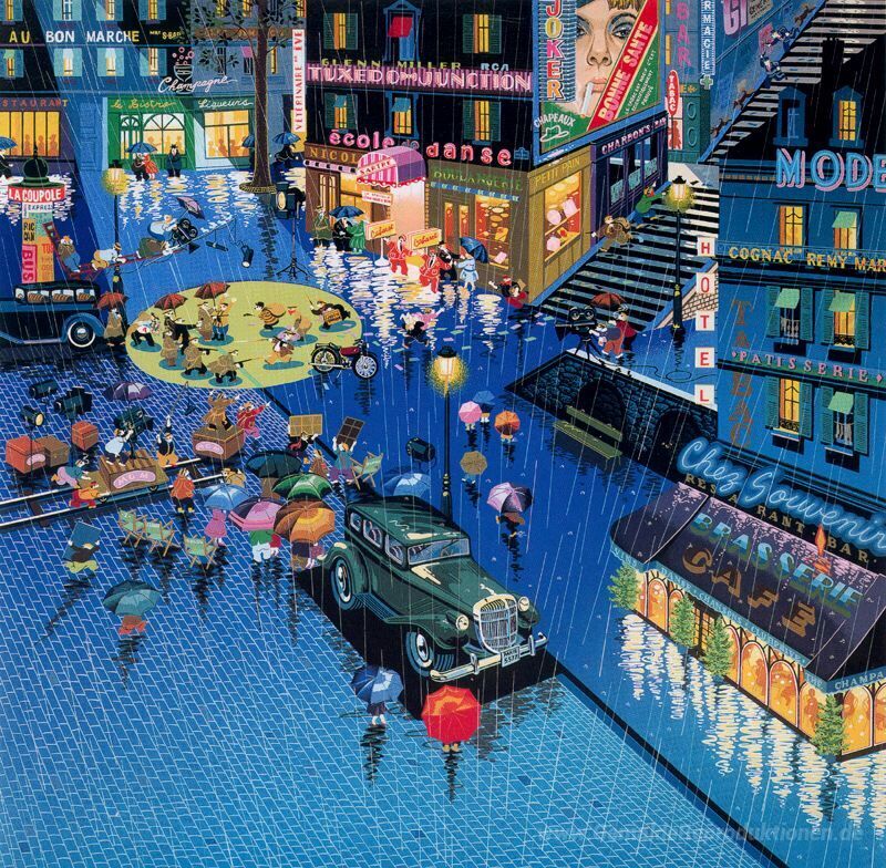 Wir bieten Ihnen eine handgefertigte Reproduktion auf Leinwand des berühmten Kunstwerks 'Robbers' von Hiro Yamagata, aus dem Reproduktionsmuseum.
