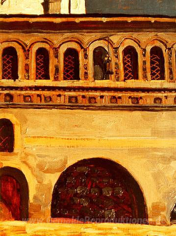 Wir bieten Ihnen eine handgefertigte Reproduktion auf Leinwand des berühmten Kunstwerks 'Rostov Veliky. Hierarch Türme.' von Nicholas Roerich, aus dem Reproduktionsmuseum.