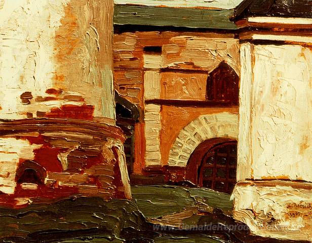 Wir bieten Ihnen eine handgefertigte Reproduktion auf Leinwand des berühmten Kunstwerks 'Rostov Veliky. Yard in den Kreml.' von Nicholas Roerich, aus dem Reproduktionsmuseum.