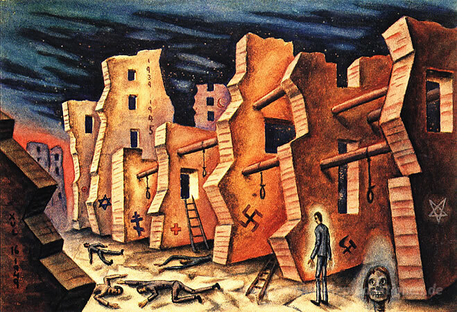 Wir bieten Ihnen eine handgefertigte Reproduktion auf Leinwand des berühmten Kunstwerks 'Rua Ruini' von Xul Solar, aus dem Reproduktionsmuseum.
