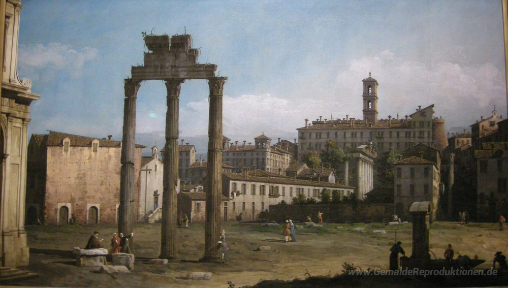 Wir bieten Ihnen eine handgefertigte Reproduktion auf Leinwand des berühmten Kunstwerks 'Ruinen des Forum, Rom' von Bernardo Bellotto, aus dem Reproduktionsmuseum.