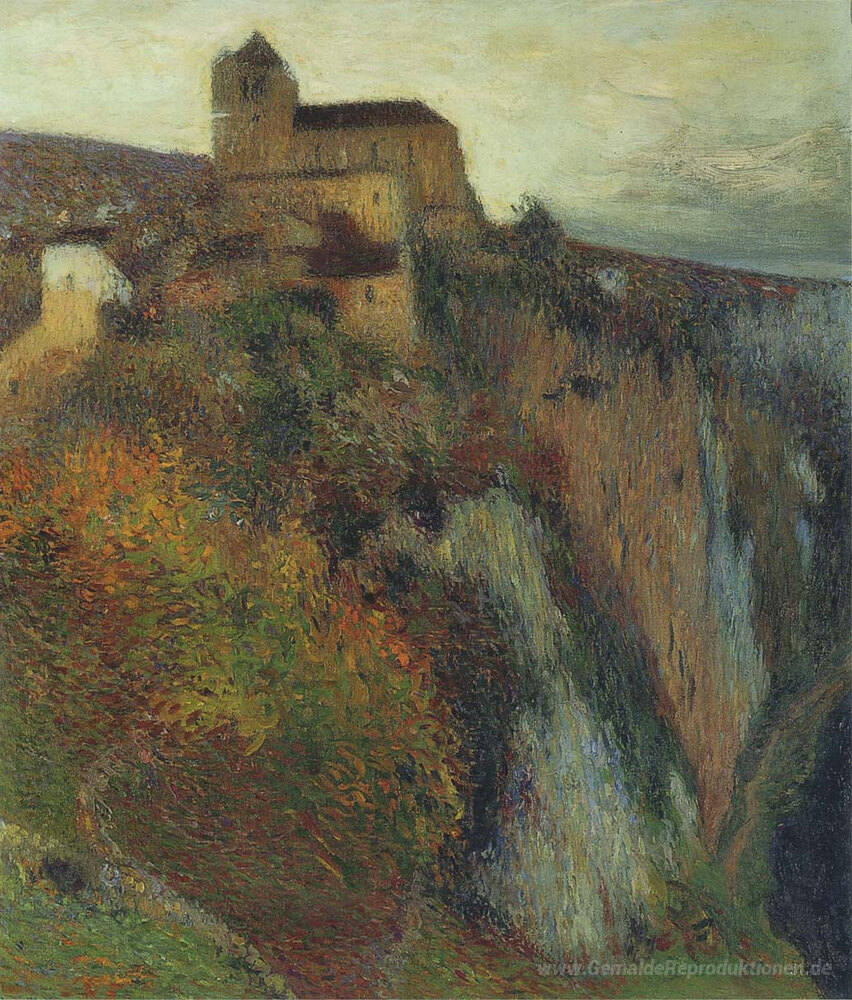 Wir bieten Ihnen eine handgefertigte Reproduktion auf Leinwand des berühmten Kunstwerks 'Saint-Cirq-Lapopie im Abend' von Henri Martin, aus dem Reproduktionsmuseum.