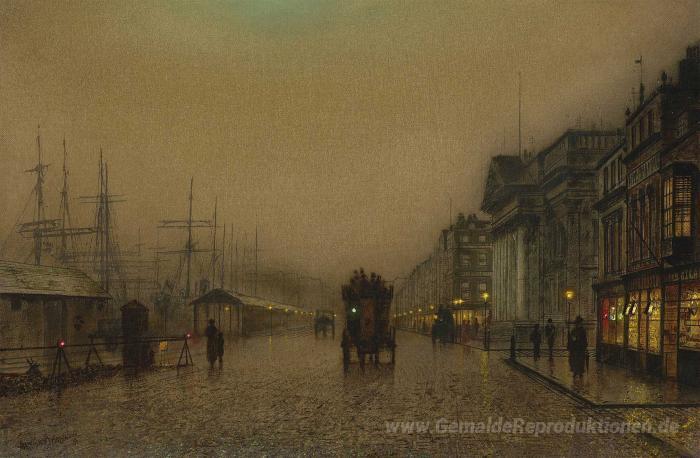 Wir bieten Ihnen eine handgefertigte Reproduktion auf Leinwand des berühmten Kunstwerks 'Salthouse Dock, Liverpool' von John Atkinson Grimshaw, aus dem Reproduktionsmuseum.