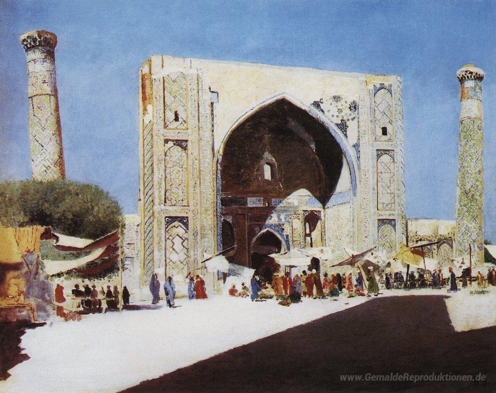 Wir bieten Ihnen eine handgefertigte Reproduktion auf Leinwand des berühmten Kunstwerks 'Samarkand' von Vasily Vereshchagin, aus dem Reproduktionsmuseum.