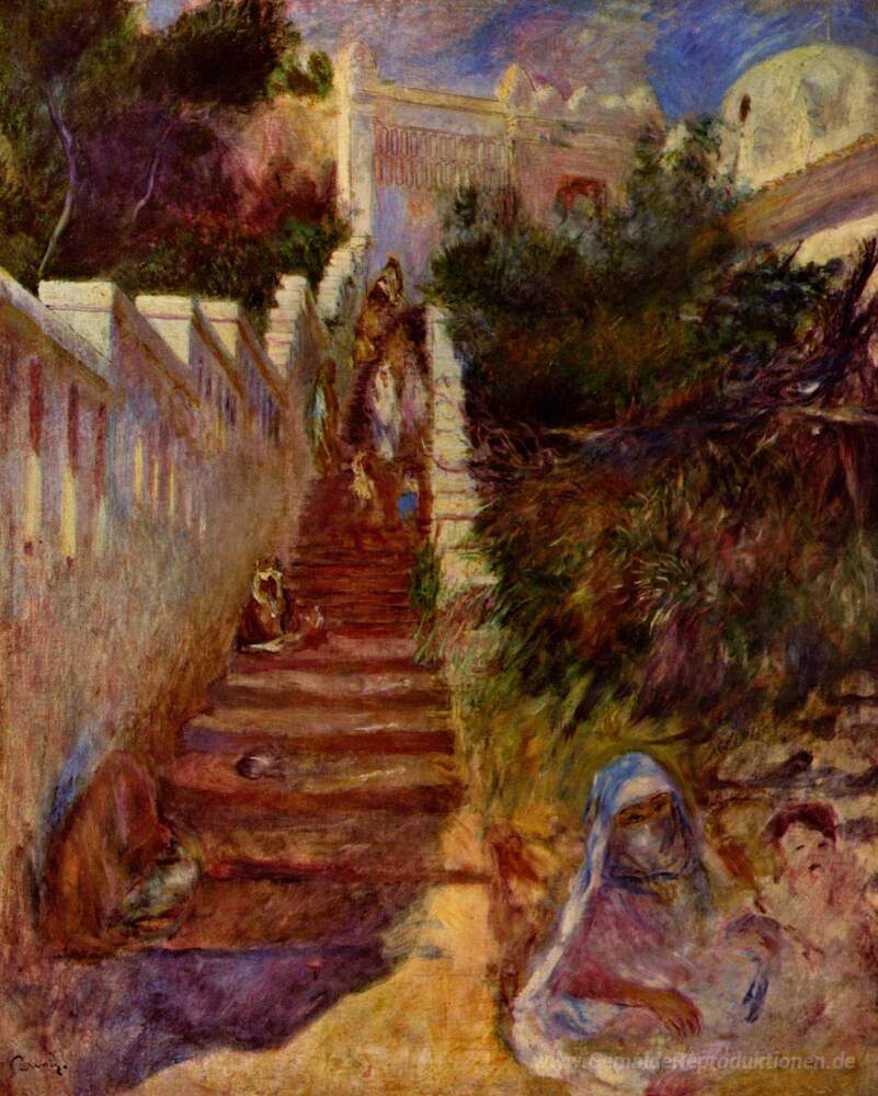 Wir bieten Ihnen eine handgefertigte Reproduktion auf Leinwand des berühmten Kunstwerks 'Schritte in Algier' von Pierre-Auguste Renoir, aus dem Reproduktionsmuseum.