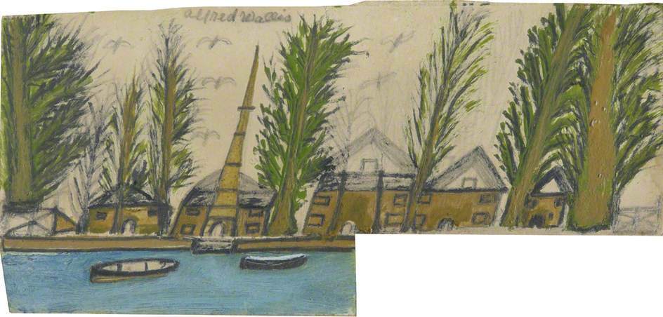 Wir bieten Ihnen eine handgefertigte Reproduktion auf Leinwand des berühmten Kunstwerks 'Shoreline' von Alfred Wallis, aus dem Reproduktionsmuseum.