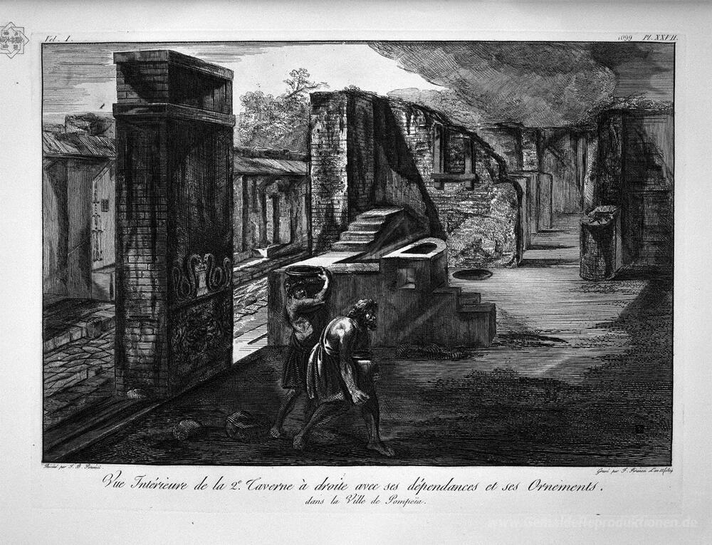 Wir bieten Ihnen eine handgefertigte Reproduktion auf Leinwand des berühmten Kunstwerks 'Split und Erhebungen der Taverne des Priapus' von Giovanni Battista Piranesi, aus dem Reproduktionsmuseum.