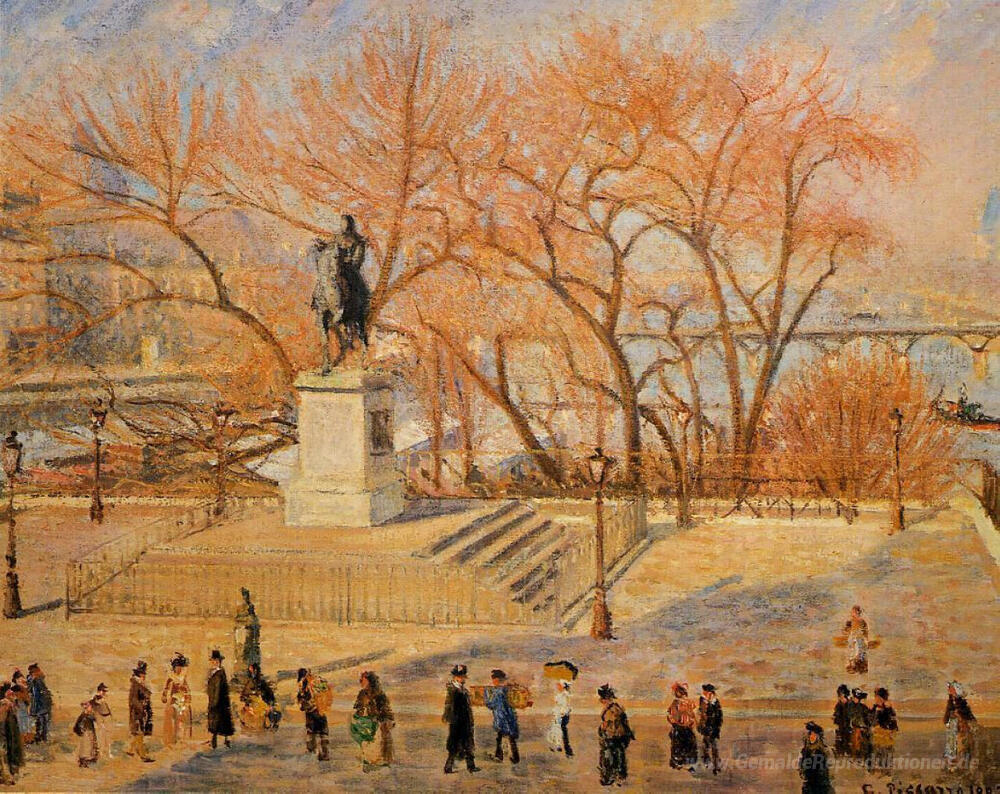 Wir bieten Ihnen eine handgefertigte Reproduktion auf Leinwand des berühmten Kunstwerks 'Square du Vert Galant, Sunny Morning' von Camille Pissarro, aus dem Reproduktionsmuseum.