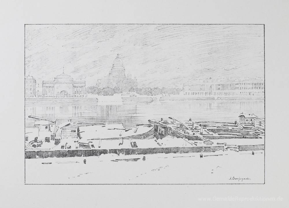 Wir bieten Ihnen eine handgefertigte Reproduktion auf Leinwand des berühmten Kunstwerks 'St. Isaaks-Kathedrale in einem nebligen Tag' von Anna Ostroumova-Lebedeva, aus dem Reproduktionsmuseum.