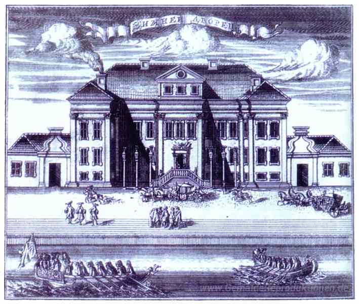 Wir bieten Ihnen eine handgefertigte Reproduktion auf Leinwand des berühmten Kunstwerks 'St. Petersburg. Blick auf den Winterpalast von Peter I.' von Alexey Zubov, aus dem Reproduktionsmuseum.