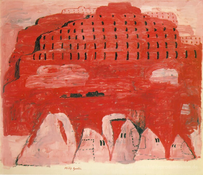 Wir bieten Ihnen eine handgefertigte Reproduktion auf Leinwand des berühmten Kunstwerks 'Stadtrand' von Philip Guston, aus dem Reproduktionsmuseum.