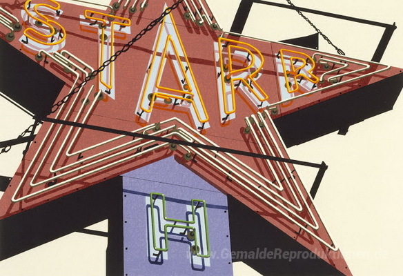 Wir bieten Ihnen eine handgefertigte Reproduktion auf Leinwand des berühmten Kunstwerks 'Starr' von Robert Cottingham, aus dem Reproduktionsmuseum.