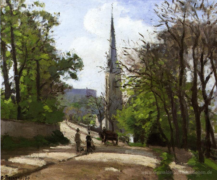 Wir bieten Ihnen eine handgefertigte Reproduktion auf Leinwand des berühmten Kunstwerks 'Stephanskirche, Lower Norwood' von Camille Pissarro, aus dem Reproduktionsmuseum.