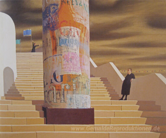 Wir bieten Ihnen eine handgefertigte Reproduktion auf Leinwand des berühmten Kunstwerks 'Steps - Palma' von Jeffrey Smart, aus dem Reproduktionsmuseum.