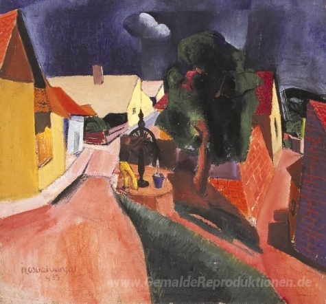 Wir bieten Ihnen eine handgefertigte Reproduktion auf Leinwand des berühmten Kunstwerks 'Straße bei Szentendre in Stürmisches Wetter' von Istvan Ilosvai Varga, aus dem Reproduktionsmuseum.