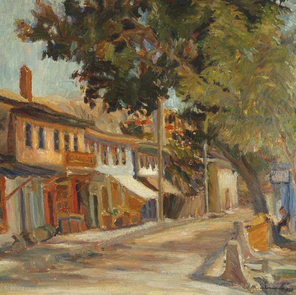 Wir bieten Ihnen eine handgefertigte Reproduktion auf Leinwand des berühmten Kunstwerks 'Strada la Balcic' von Jean Alexandru Steriadi, aus dem Reproduktionsmuseum.