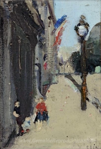 Wir bieten Ihnen eine handgefertigte Reproduktion auf Leinwand des berühmten Kunstwerks 'Strasse in Paris' von Varlin, aus dem Reproduktionsmuseum.