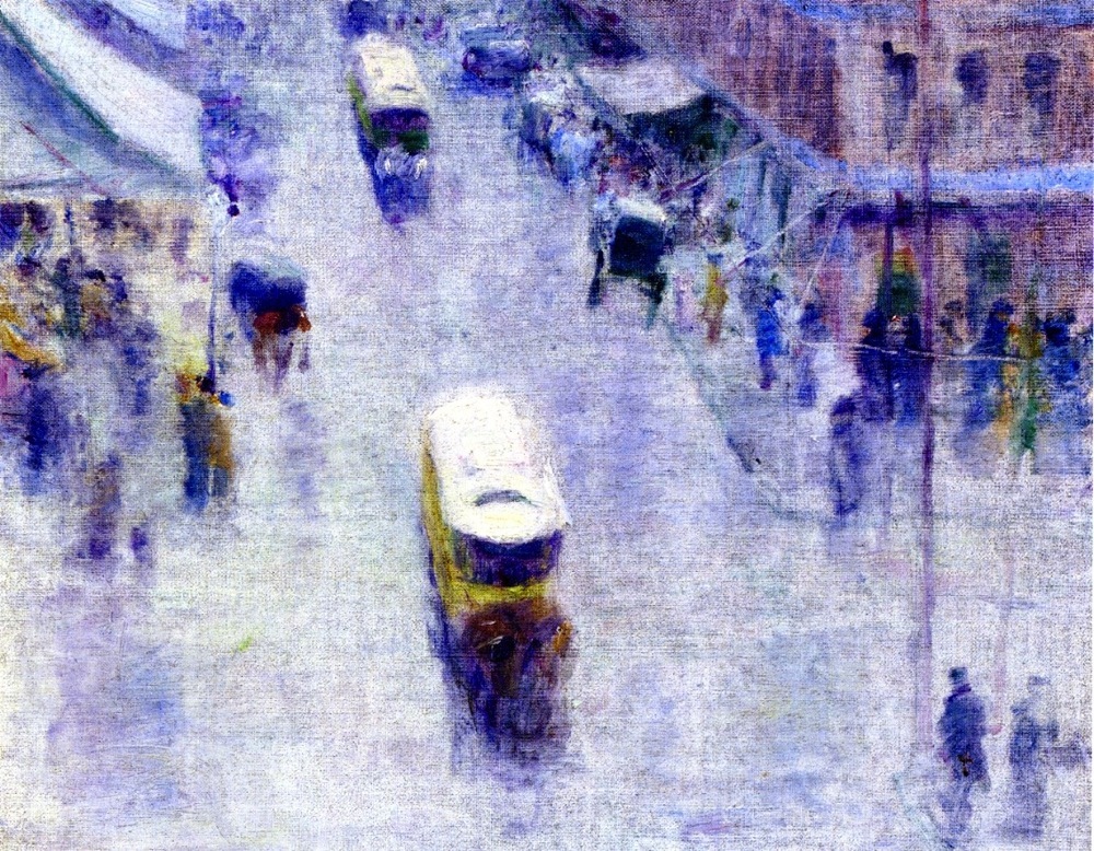 Wir bieten Ihnen eine handgefertigte Reproduktion auf Leinwand des berühmten Kunstwerks 'Strassenecke' von Robert Henri, aus dem Reproduktionsmuseum.