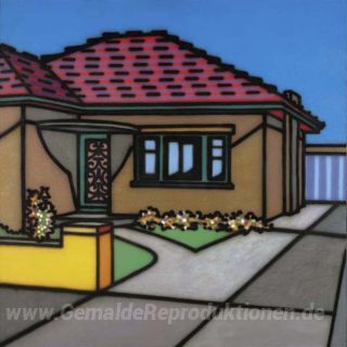 Willkommen in der faszinierenden Welt der Ölgemälde, wo jede Leinwand ein einzigartiges Fenster zu Emotionen und Ésthetik öffnet. Unser Highlight, das Stuck Hause von Howard Arkley, ist ein beeindruckendes Beispiel für den Ausschnitt des Lebens, den der Künstler in seinen Werken erforscht. Arkley, bekannt für seinen markanten Stil und die Verwendung lebendiger Farbpaletten, fängt die Essenz modernen Lebens auf eine Weise ein, die sowohl nostalgisch als auch visionär ist.