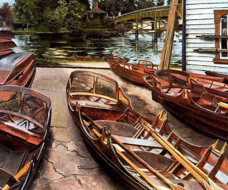 Wir bieten Ihnen eine handgefertigte Reproduktion auf Leinwand des berühmten Kunstwerks 'Türken Bauwerft Cookham' von Stanley Spencer, aus dem Reproduktionsmuseum.