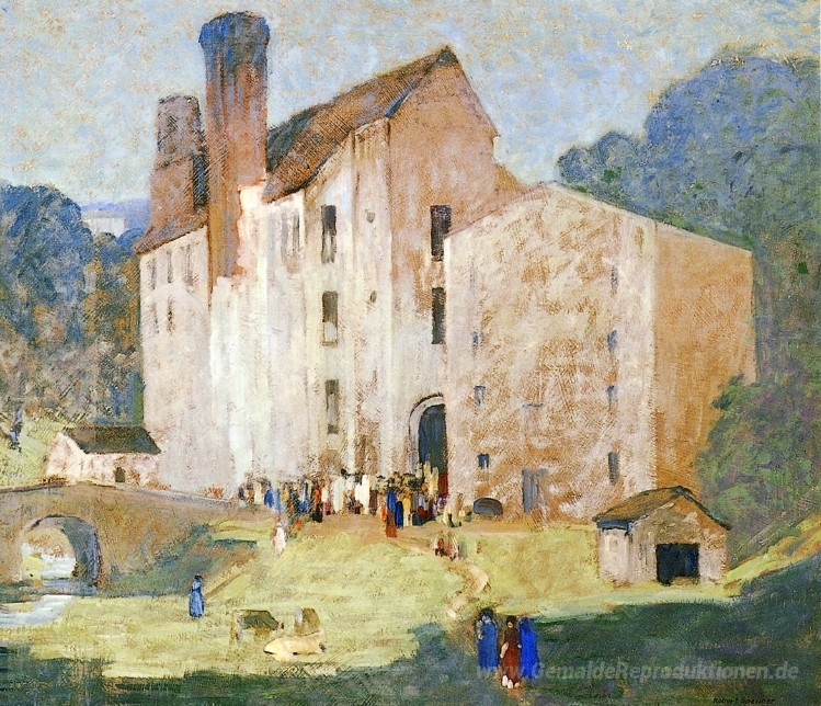 Wir bieten Ihnen eine handgefertigte Reproduktion auf Leinwand des berühmten Kunstwerks 'Tal-Mühlen' von Robert Spencer, aus dem Reproduktionsmuseum.