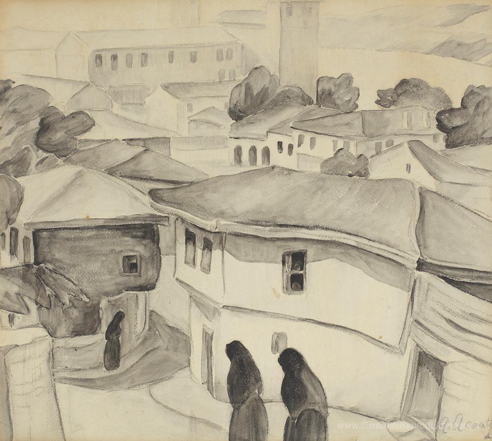 Wir bieten Ihnen eine handgefertigte Reproduktion auf Leinwand des berühmten Kunstwerks 'Tatar Frauen in Balcic' von Nutzi Acontz, aus dem Reproduktionsmuseum.