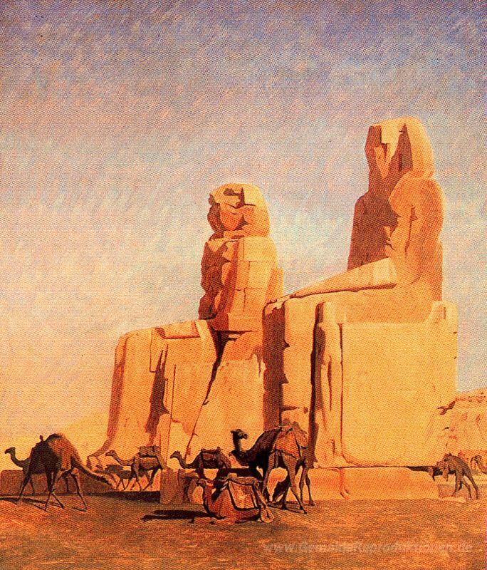 Wir bieten Ihnen eine handgefertigte Reproduktion auf Leinwand des berühmten Kunstwerks 'Theben Colosseums, Memnon und Sesostris (Studie)' von Jean-Leon Gerome, aus dem Reproduktionsmuseum.