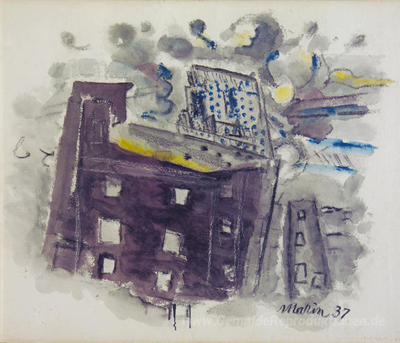 Wir bieten Ihnen eine handgefertigte Reproduktion auf Leinwand des berühmten Kunstwerks 'Top von der Radio City, New York City' von John Marin, aus dem Reproduktionsmuseum.