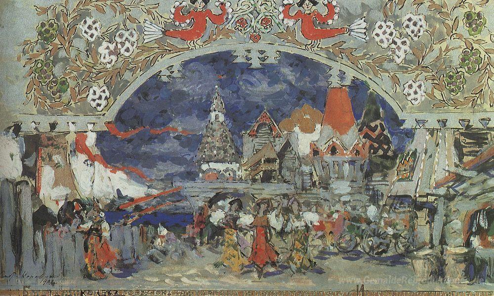 Wir bieten Ihnen eine handgefertigte Reproduktion auf Leinwand des berühmten Kunstwerks 'Trading-Pier in der Hauptstadt City.Sketch der Satz für die C Pu' von Konstantin Korovin, aus dem Reproduktionsmuseum.