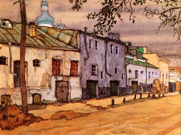 Wir bieten Ihnen eine handgefertigte Reproduktion auf Leinwand des berühmten Kunstwerks 'Tschernigow, Lagerhallen' von Mstislav Dobuzhinsky, aus dem Reproduktionsmuseum.