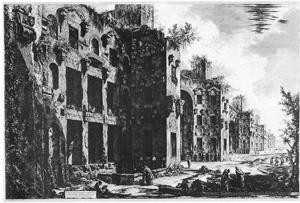 Wir bieten Ihnen eine handgefertigte Reproduktion auf Leinwand des berühmten Kunstwerks 'Vedute di Roma' von Giovanni Battista Piranesi, aus dem Reproduktionsmuseum.