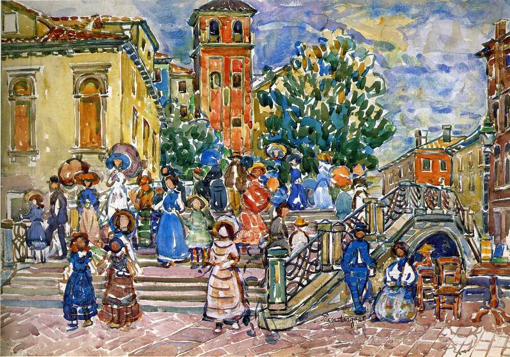 Wir bieten Ihnen eine handgefertigte Reproduktion auf Leinwand des berühmten Kunstwerks 'Venedig' von Maurice Prendergast, aus dem Reproduktionsmuseum.
