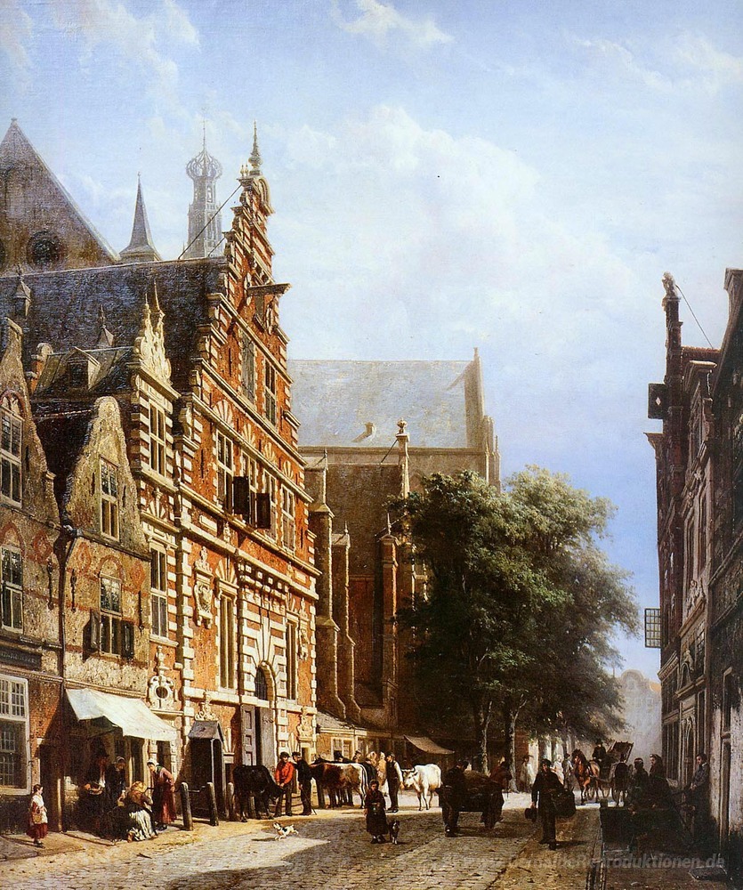 Wir bieten Ihnen eine handgefertigte Reproduktion auf Leinwand des berühmten Kunstwerks 'Vleeschhal und Grote Kerk in Haarlem' von Cornelis Springer, aus dem Reproduktionsmuseum.