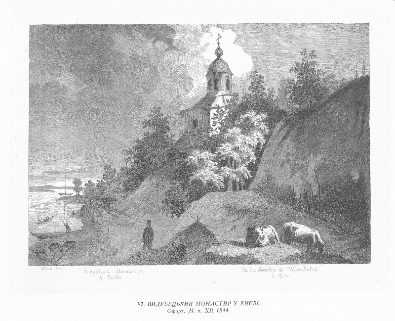Wir bieten Ihnen eine handgefertigte Reproduktion auf Leinwand des berühmten Kunstwerks 'Vydubychi Kloster in Kiew' von Taras Shevchenko, aus dem Reproduktionsmuseum.
