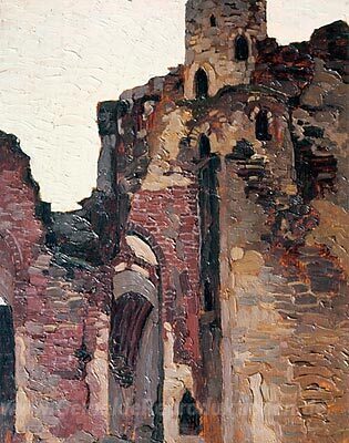 Wir bieten Ihnen eine handgefertigte Reproduktion auf Leinwand des berühmten Kunstwerks 'Wenden. Die Ruinen der Kapelle.' von Nicholas Roerich, aus dem Reproduktionsmuseum.