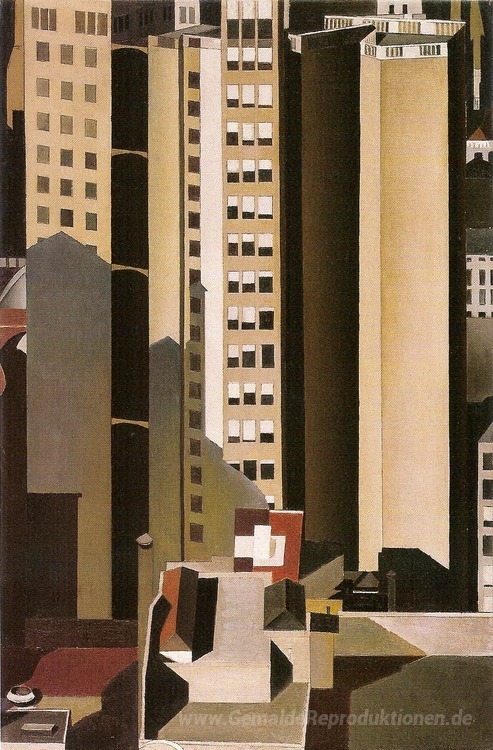 Wir bieten Ihnen eine handgefertigte Reproduktion auf Leinwand des berühmten Kunstwerks 'Wolkenkratzer' von Charles Sheeler, aus dem Reproduktionsmuseum.