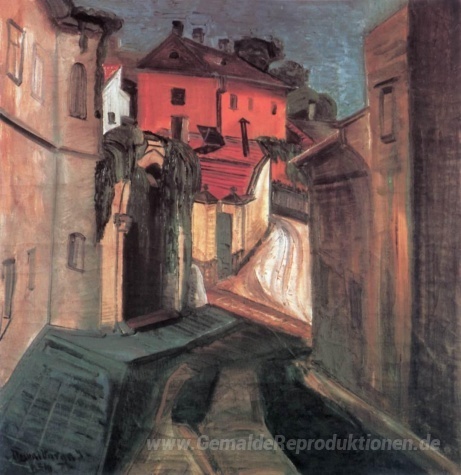 Wir bieten Ihnen eine handgefertigte Reproduktion auf Leinwand des berühmten Kunstwerks 'Yellow Blockhaus' von Istvan Ilosvai Varga, aus dem Reproduktionsmuseum.