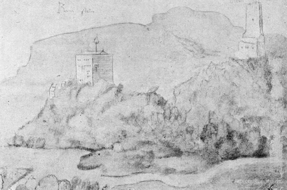 Wir bieten Ihnen eine handgefertigte Reproduktion auf Leinwand des berühmten Kunstwerks 'Zeichnung der Schlösser von Alsacien Ortenberg (rechts) und Rams' von Hans Baldung, aus dem Reproduktionsmuseum.