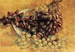 Tulpen und Austern auf einem schwarzen Hintergrund