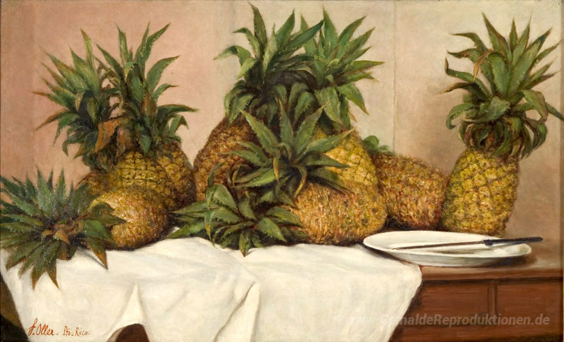 Wir bieten Ihnen eine handgefertigte Reproduktion auf Leinwand des berühmten Kunstwerks 'Ananas' von Francisco Oller, aus dem Reproduktionsmuseum.